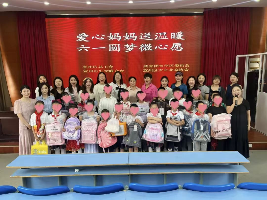 宣州区总工会联合区妇联、团区委、区女企业家协会走进沈村中心小学、沈村丁店小学、洪林镇中心小学,为50余名留守儿童送上学习包。