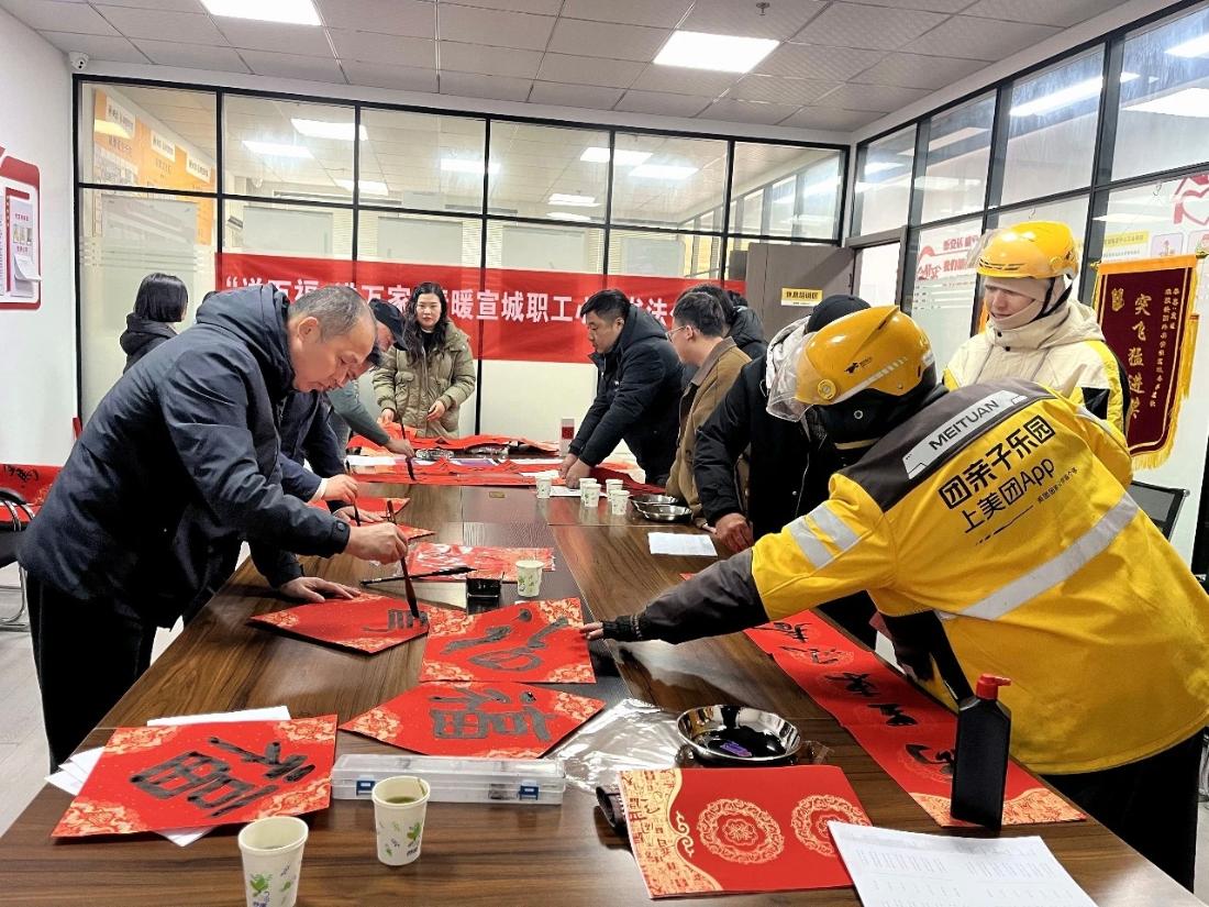 新春的脚步越来越近,年味在街巷间愈发浓厚。为传承中华优秀传统文化,把工会组织的温暖与关怀精准送达一线职工身边,1月28日下午,宣城市总工会联合市委社会工作部、市书法家协会以及宣州区总工会,走进宣州区美团外卖驿站开展“送万福·进万家”书法公益活动,为奔波在城市街巷的外卖骑手、环卫工人们送上专属“文化年货”与新春祝福。