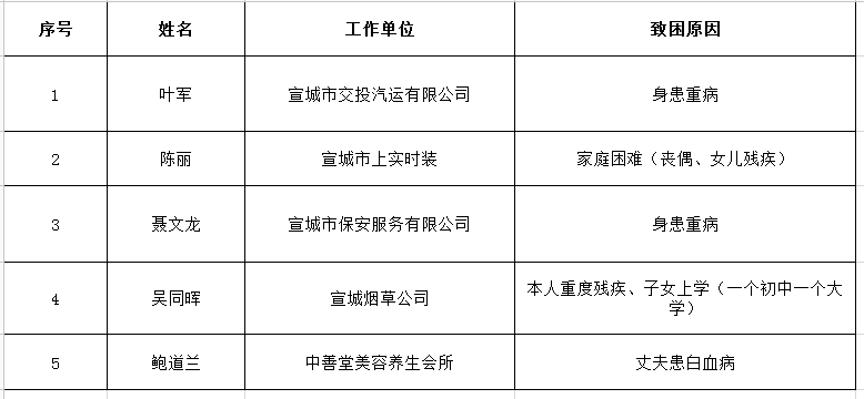 宣城市总工会市本级2025年三季度拟生活救助对象困难情况公示