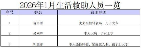 宣城市总工会市本级2026年1月份拟生活救助对象困难情况公示