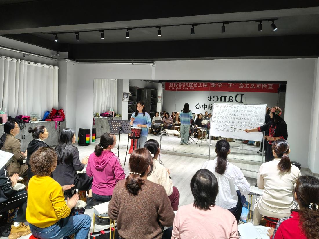 “我们在以往基础课程上,根据职工成长需求,开设技能提升特色课程。”宣州区工人文化宫工作者介绍道。2025年工人文化宫秋季“五一学堂”公益班在职工喜爱度、参与度双高的热门手鼓课程上,特增设手鼓进阶班,聚焦节奏编排、曲目合奏等提升内容,进一步满足职工深化技能、展现才艺的诉求,推动课程体系向系统化、层次化方向升级。